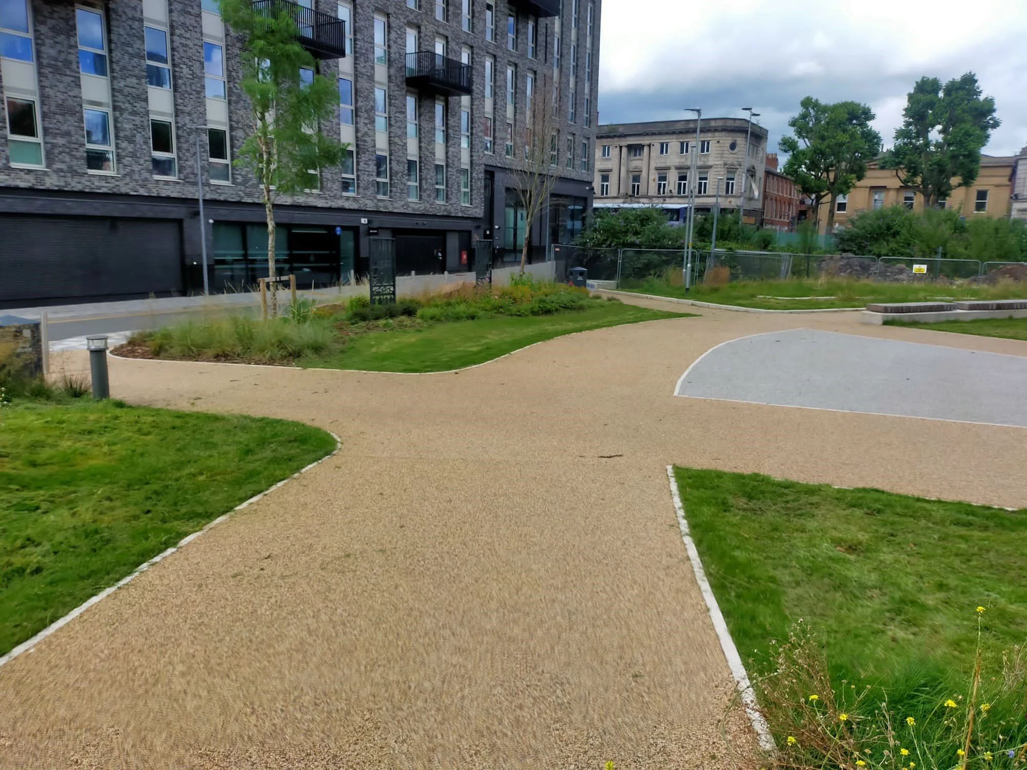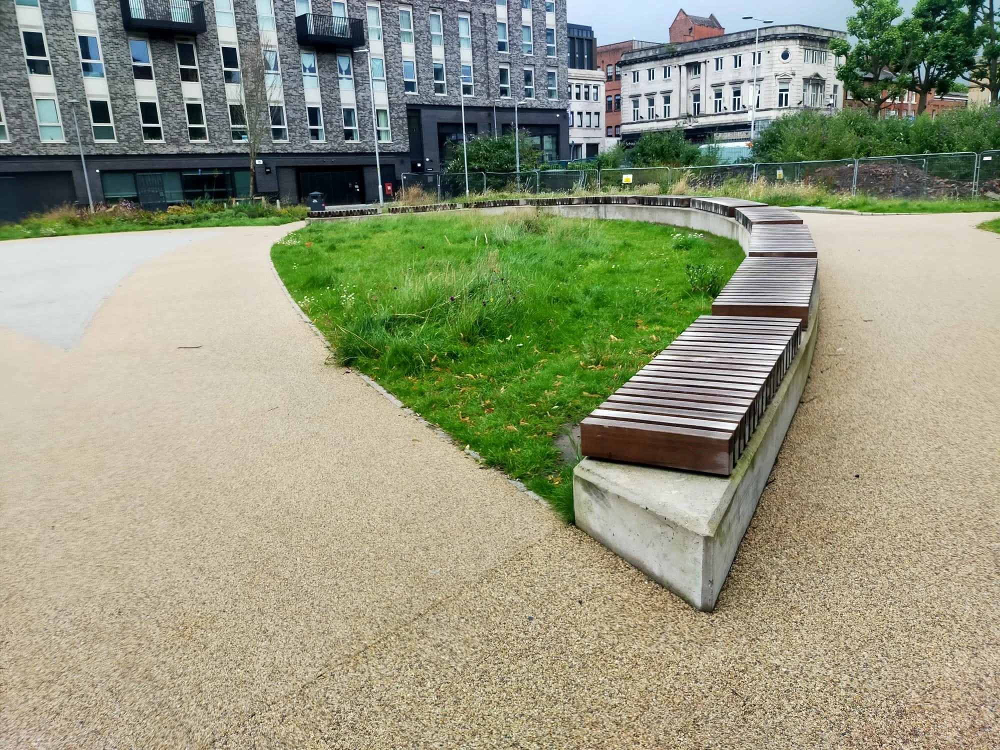 This project comprised the refurbishment of Islington Park, Salford. The scheme was part of the City Centre Bee Network proposals to establish and integrate a network of routes through the creation of new walking and cycling routes, public realm, green spaces, new bridges and opening up railway arches for public access.
